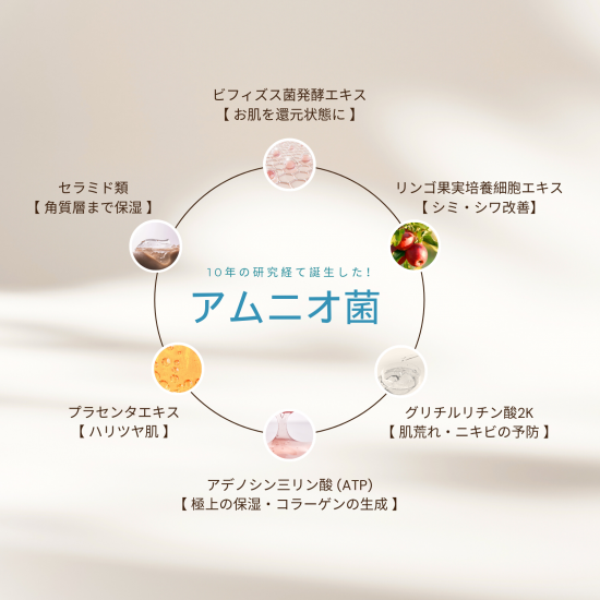 シミ、しわ、たるみ、くすみなどのお肌のトラブルを「赤ちゃん肌」になることで改善する。「酸化」と正反対の「還元系」である羊水、その成分をたっぷり配合。アムニオーラを体感すれば、「自分の本来の肌はこれなんだ!」と気づかせてくれます。